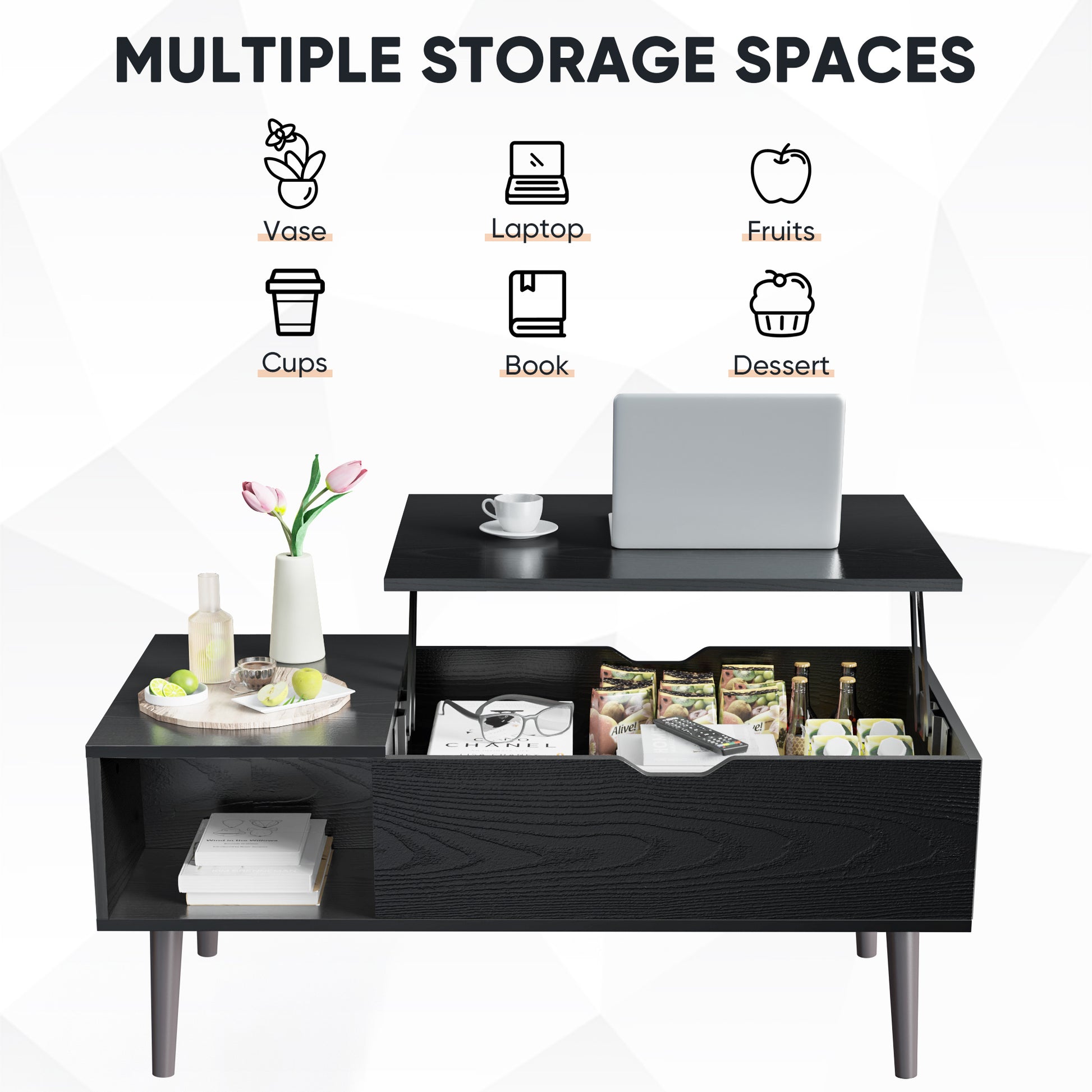 - 【Practical Lift Top Design】 An nice work-from-home solution. This living room table is equipped with a lifting tabletop that can be pulled out (elevated to 6.3”, bear up to 11 lbs) effortlessly when you need a quick workspace in the living room. You don't have to lean forward to access your laptop on the table. It's also the perfect dining room table to eat off, do homework, anything as your living room essentials! Stability will also be guaranteed while adjusting.